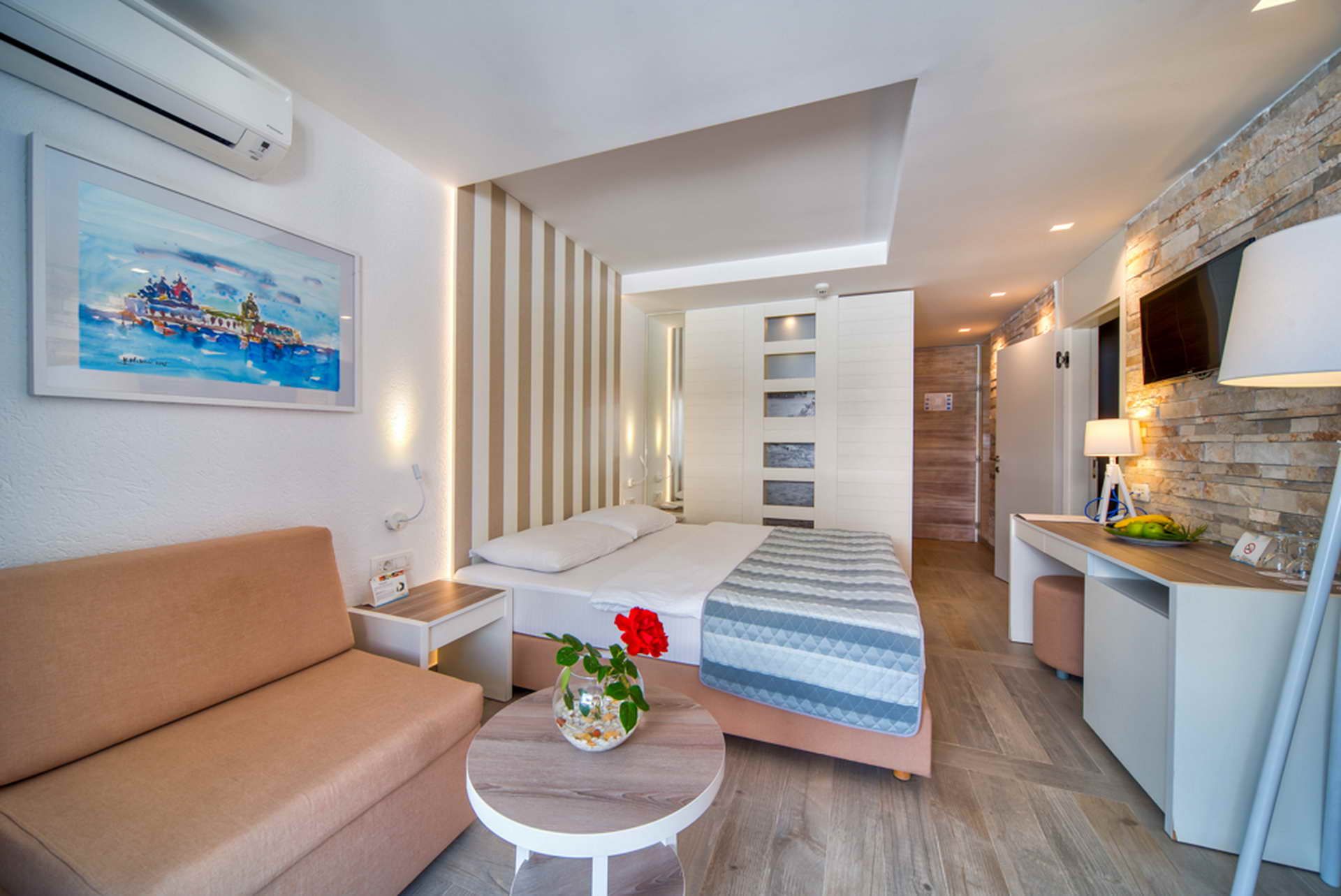 The quiet hotel rooms in any of our four villas will give you the unsurpassed comfort of waking up to the sound of the sea. Our villas have a total of 187 rooms