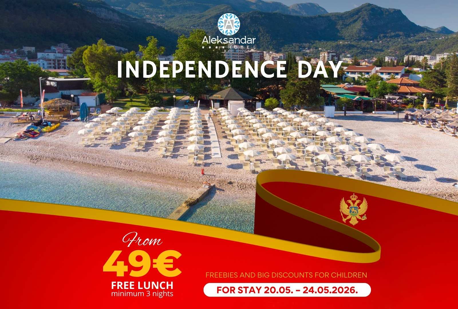 • Special price discount applies to all types of accommodation units, while special discounts for children accompanied by two adults apply exclusively to stays in double rooms